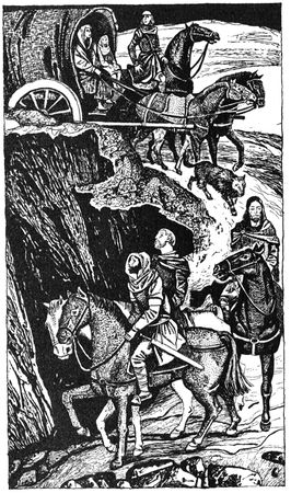 Каллан мало-помалу придерживал своего коня, так что тот постепенно отстал от повозки.