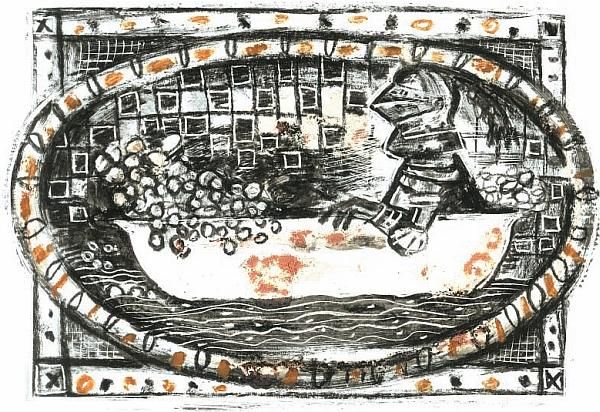 Донья Маня смотрит на картину боя задумчиво, слова великановы в уме взвешивает. А барон Николай торсом извивается, щит бросил и пытается свой шлем на голове поправить – он от удара сплющился и сквозь смятые прорези не видать ничего. Великан подошел к рыцарю, достал из кармана великанскую бутылочную открывалку, помог рыцарю шлем снять. Покатился шелом по камням, как консервная банка, да куда-то в расщелину канул. Великан взглядом его проводил, присел рядом с рыцарем, закурил трубку великанскую.