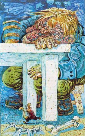 Но жена, как и в прошлый раз, стала корить его: мол, человечьим духом и не пахнет, просто нюх у него от старости притупился. Великан не любил таких разговоров. Он угрюмо съел свой завтрак и сказал: