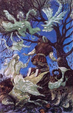 Он повернул было к дому… только где ж он, его дом? Он столько бродил и кружил в поисках своих вещей, что совсем сбился с пути, а ночь была черна, как яма. И вдруг, к великой своей радости, он заметил впереди огонек. Словно кто-то медленно шел с фонарем по лугу.