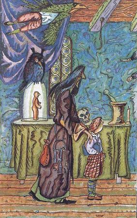 Но тут мистер Оррак хлопнул в ладоши; тотчас все звери и птицы исчезли, вместо них появились школьники, чинно сидящие за столами. Лишь одно странное существо - с головой мальчика, но с ногами и телом горностая - неуклюже копошилось на полу.