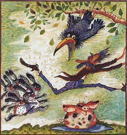 Галопи-галопи-хлоп!А гадкий ворон, смеясь, улетел,