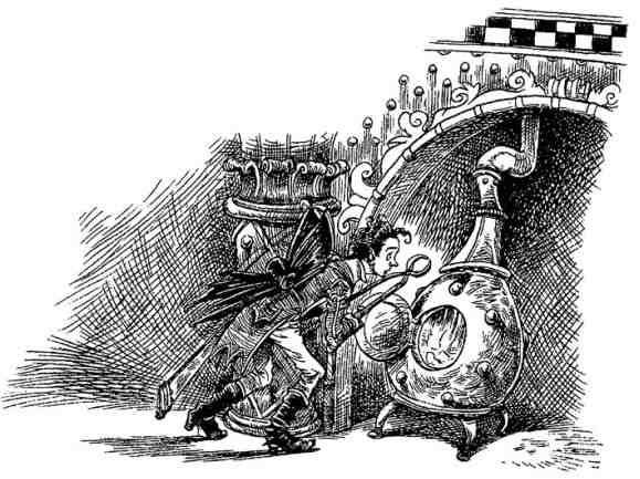 Квинт кивнул, схватил лампу и повернулся к печке. С напряжённым лицом он направился к громадному камину, в котором стояла печка. Его сердце бешено колотилось. Ноги как будто налились свинцом. Уголком глаза он заметил, как искра промелькнула по полу зала, - хотя, вглядевшись, он ничего не увидел.