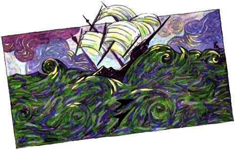 Морской Гридиг обливался морской водой, Наша Добрая Змея думала, о чем сама хотела, Крэг Кутенейский Баран лез по парусу, и ему казалось, что он гуляет по Кутенейским горам, а я варил обед на нашей корабельной печке. Но вдруг подул сильный ветер. С каждой минутой он становился сильнее и сильнее. Началась настоящая буря. Поднялись страшные волны. Наш прекрасный корабль затрещал. Все полетело кувырком.