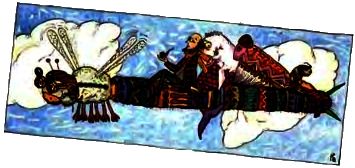 – Скорее садитесь, скорее! – сказала она. – Пора лететь. Мы все уселись на Стрекозу, помахали добрым муравьям, и Стрекоза взвилась в воздух.