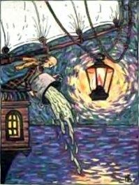 И он нырнул в море и быстро поплыл к кораблю, ведь он был Морским Гридигом.