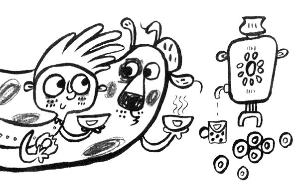 С мороза придёт - щёки раскраснеются, и стремглав к самовару. Сидим под абажуром - мама, папа, Бабака и я. Чай с баранками пьём из блюдечек, пыхтим. А за околицей снег падает еле слышно. Хлопья большие, как кукурузные, только белые. А под валенками так же вкусно хрустят. Укутывают Барнаул одеялом, как дитя, укачивают, убаюкивают… Ой, мороз-моро-оз! Не морозь меня-я! Не морозь меня-я, моего коня-я-я!