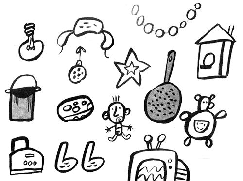Мягкие игрушки, гирлянды разнокалиберные, целлулоидные пупсы, китайские шары, эмалированные вёдра, скворечники, картонные звёзды, шапки-ушанки, банные шайки, партия импортных клюшек для гольфа (подарок из города-побратима Сарагосы), телевизоры "Горизонт", валенки, дыроколы, раритетные утюги, лампы дневного освещения, детские колготки, набитые для формы ватой, бюстики вождей, подушки-думочки, парики, дуршлаги… А один мужчина собачью шубу на ёлку приволок прямо на плечиках. Прямо с женой внутри. "Повесьте, - говорит, - её на самую маковку до февраля. А я потом заберу".