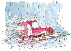 Они вышли из фургона, чуть не падая от усталости, и обнялись, не обращая внимания на яростный ливень.