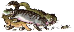 И в самом деле, кошки заметили игрушечную мышь. Словно вихрь, пронеслись они над забором и через мгновение заполнили всю улицу. Тут же раздался оглушительный кошачий визг.