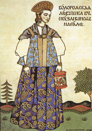И. Билибин. Вологодская девушка в праздничном наряде