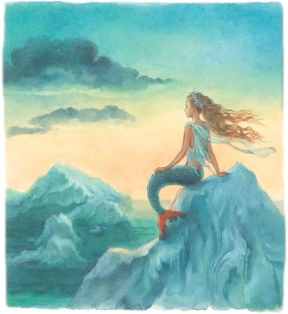 Младшая же русалочка, когда сестры её всплывали рука об руку на поверхность моря, оставалась одна-одинёшенька и смотрела им вслед, готовая заплакать, но русалки не умеют плакать, и от этого ей было ещё тяжелей.