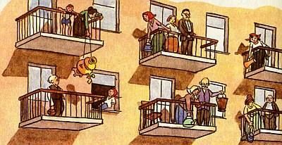 Раскрылись окна в домах. На балконах старушки звали: