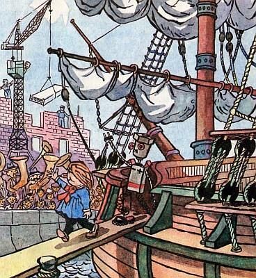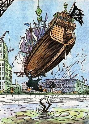 – Очень полезная работа – высматривать жуковкороедов, – похвалил усатый дядя, похожий на моряка, и добавил: – А этого подмокшего моряка, горекапитана, я беру в наш магазин. Мне как раз нужен помощник. Будет вылавливать сачком заводные пароходики. На парусном корабле мы устроим филиал магазина.