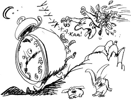 Будильник покатился со смеху, и стрелки его завращались с бешеной скоростью.