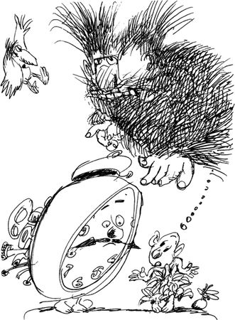 Будильник смотрел, смотрел, стрелки его вращались по кругу все быстрее, а сам он не смог удержаться от хохота. Даже по коленкам себя, наверное, похлопал бы, будь у будильников колени. "Тик-так, тик-так, тик-так!" - задыхаясь от смеха, твердил он.