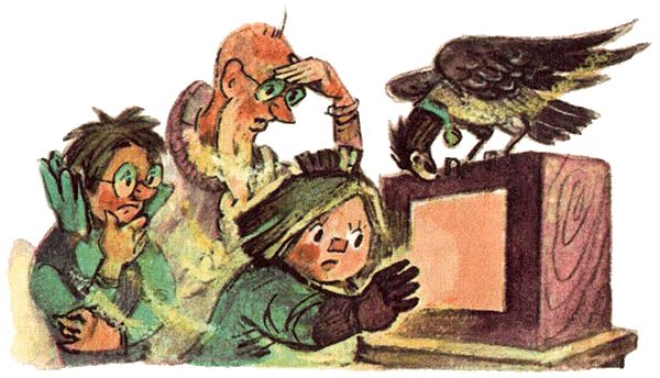 Начать с того, что волшебный телевизор во дворце Страшилы перестал работать. Правитель Изумрудного острова и его друзья всё время следили за злоключениями Арахны. Они видели, как находчивый дракон оттяпал у ковра-самолёта целый угол и как после этого ковёр еле-еле бултыхался в воздухе. Они со смехом наблюдали, как Руф Билан шнырял по деревням, покинутым Жевунами, в поисках съестного и каждый раз возвращался к своей повелительнице с постной рожей. Расправа колдуньи с бедным котом привела Страшилу и его друзей в негодование, а чудовищный пир Арахны заставил хохотать до колик.