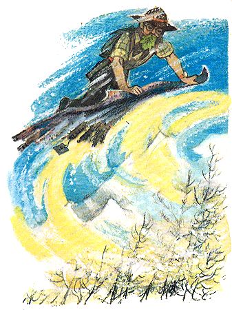 Следующий день похода выдался очень трудным. Дорогу то и дело пересекали ущелья с отвесными стенами. Иные из них удавалось обходить, через другие Тим перекидывал мосты, срубая деревья, росшие на краю ущелья.