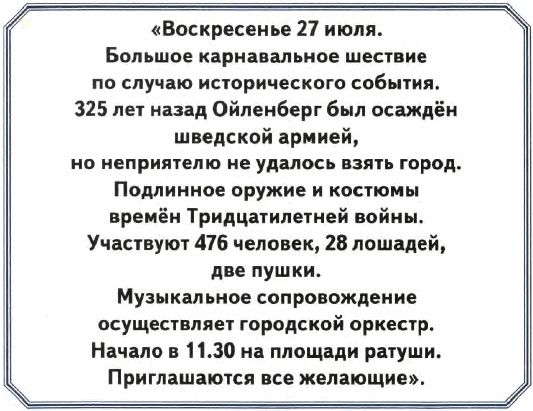 - Подумать только, - снова сказал бургомистр, - этот чёрный незнакомец всё ещё на свободе! Где-то в городе! И именно сейчас, накануне праздника. Иногда я спрашиваю себя: зачем вообще существует полиция? Неужели вы не понимаете, что позорите весь Ойленберг?