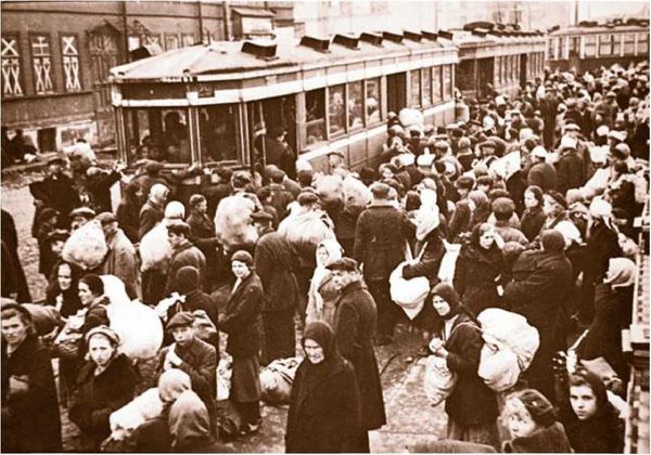 Посадка в трамвай эвакуируемых из Ленинграда. Сентябрь 1941 г.