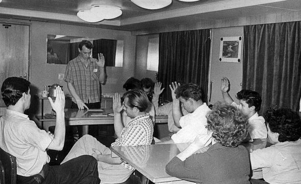 В соответствии с расписанием на судне проводилась общественная работа, выпускалась стенгазета, особенно нравилась морякам радиогазета: поздравляли членов экипажа с днем рождения, по их заявкам транслировали их любимые песни и музыкальные произведения. Регулярно организовывали прокат художественных кинофильмов, проводились политинформации, техническая учеба по изучению и совершенствованию морского дела по каждой специальности. Регулярно проводились учения и тренировки по пожарной тревоге, "человек за бортом" и другие.
