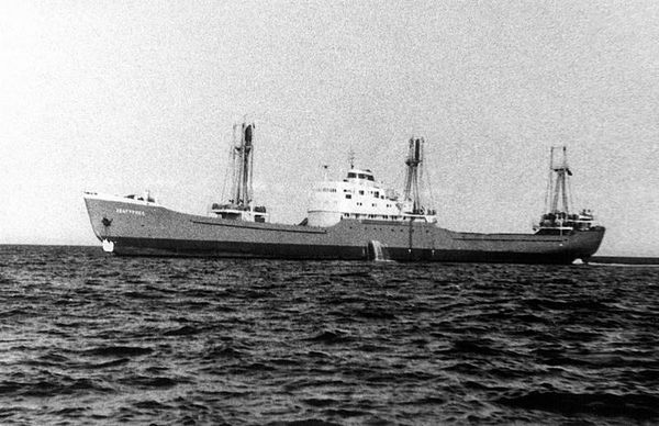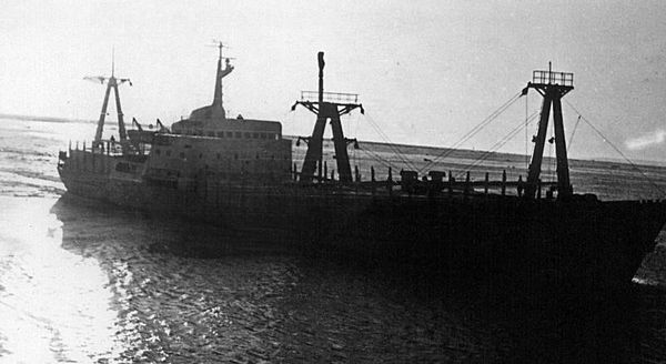 Теплоход "Абагурлес" в Красном море. На этом теплоходе я был 2-м радистом. 1965 г.