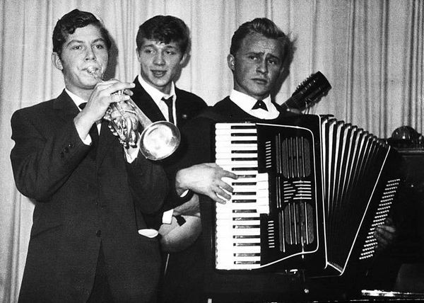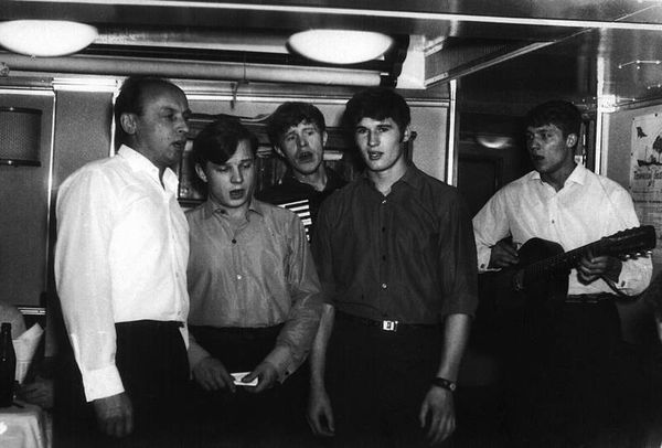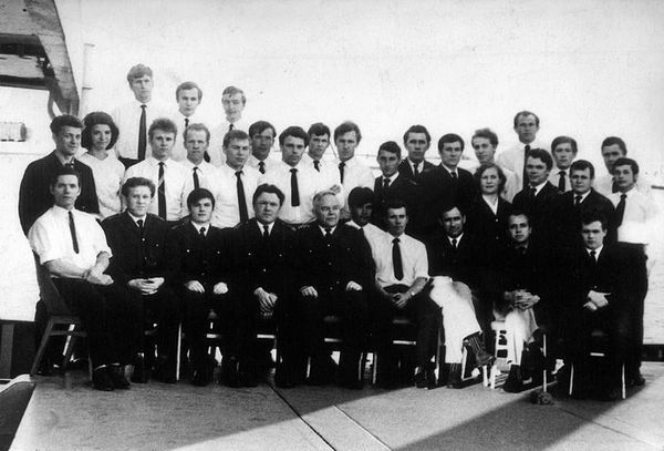 На теплоходе "Полярный" был один из лучших судовых коллективов художественной самодеятельности Северного морского пароходства. Руководил им 3-й механик Геннадий Смирнов (первый слева)