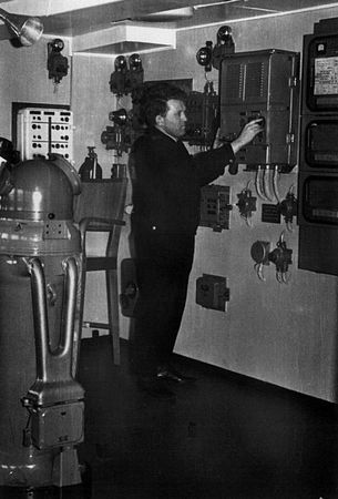 Начальник судовой радиостанции теплохода "Ока" К.А. Корняков. 1967 г.