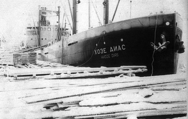 Пароход "Хозе Диас" под погрузкой на лесозаводе № 23. Назначение – в Калининград