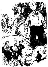 Серёжа набил карман яблоками и спустился с дерева. "Этот Песчаный минитак, наверно, носил сорок второй номер ботинок", - подумал он.