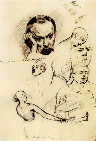 Автопортрет. Мужские головы (четыре наброска). Женская полуфигура (два наброска). 1846-1847