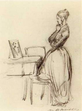 Молодая девушка перед портретом офицера (Вдовушка). 1849-1851