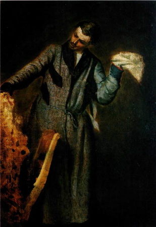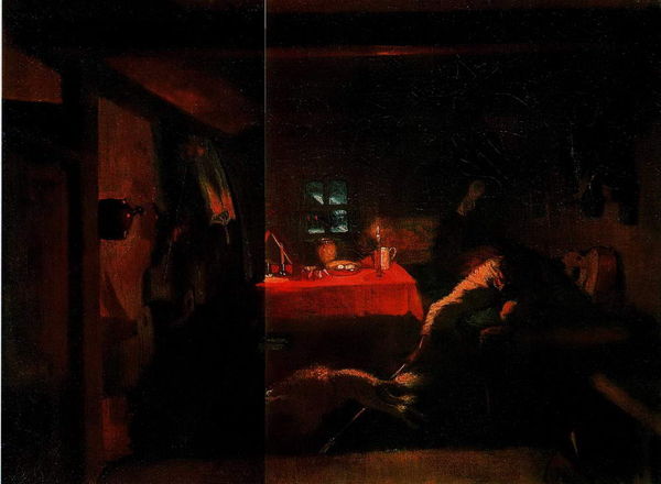 Ограничивая поле зрения, свеча интимизирует ощущение пространственной среды. Другое свойство свечи - делать зрительно осязаемым окружающий сумрак. То есть буквально и метафорически пододвигать свет к границе тьмы, зримое к черте незримого, бытие к порогу небытия. Наконец, со свечой неотъемлемо связано ощущение недолговечности вызываемого ею к жизни мира и подвластности ее света превратностям случая. В силу этого она обладает способностью делать картину зримой реальности призрачной. Иначе говоря, свеча - это не просто предмет среди предметов, это метафора. Апофеозом этой метафорической поэтики стала картина Игроки (1851-1852).