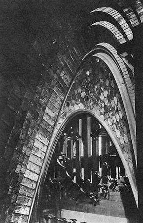 Параболические арки, поддерживающие купол центрального холла дворца Гуэль