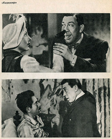Но дурак бродит по сюжету, пытается протиснуться в любую щель, сея беспокойство, неуверенность, комический разлад во всем, что изначально обстоятельно, размеренно, упорядоченно. На него сыплются шишки, над ним потешаются шлюхи и бандиты, горничные и сыщики, гонит всяк, кому не лень, а в этом не ленится никто. Но Фиселля это не смущает. Порой сдается даже, что это ему нравится: подумаешь, еще один повод поделиться со всяким, кто откликнется на его улыбку, своими бедами и делишками. Пережить все еще раз, проиграть снова на своем лице, выпить рюмку-другую за чужой счет, небрежно и комически-царственно кивнуть официанту, чтобы тот получил с незнакомого, а сдачу столь же небрежно смахнуть в карман. И снова уйти со сцены, чтобы вернуться через несколько эпизодов, пуститься в очередную авантюру, напортить себе и другим. И все это не от злобы, не от умысла - он естествен и наивен, как вольтеровский Гурон. Ему все интересно, все внове, будто он только что родился или вышел из приюта, в котором застрял до усов и бороды. Он и портит все оттого, что у него руки чешутся, что его так и тянет поглядеть - "что там внутри?" Увидал радиоприемник, повертел регулятор на полную катушку, чтобы стекла зазвенели. Что особенного? А ничего - только приемник стоит в спальне примадонны, которую Фиселль явился пограбить вместе с Бобом.