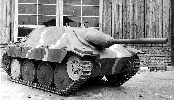 На базе САУ "Хетцер" было изготовлено 20 огнеметных танков Flammpanzer 38, 30 САУ Hetzer-Bison со 150-мм пехотным орудием sIG 33 и 181 БРЭМ Bergepanzer 38. Помимо этих машин "Хетцер" послужил базой для изготовления прототипов или проектирования целого ряда опытных образцов разведывательных танков, штурмовых гаубиц и противотанковых САУ. Наиболее любопытным из них можно считать истребитель танков Hetzer Starr ("Хетцерштарр"). Немецкое слово "штарр" переводится как "жесткий" или "неподвижно закрепленный". У этого варианта ствол 75-мм пушки был жестко связан с лобовым листом корпуса, а противооткатные устройства отсутствовали. Для обеспечения горизонтального и вертикального наведения орудие размещалось в шаровой установке. Первый прототип был изготовлен в мае 1944 года, еще три машины – в сентябре. Все они были отправлены на фирму Alkett для дальнейших испытаний. Зимой 1944/45 года завод ВММ изготовил опытную партию из 10 машин "Хетцер-штарр". Причем часть из них оснащалась дизельным двигателем Tatra 103 мощностью 220 л.с, с которым скорость машины несколько возросла.