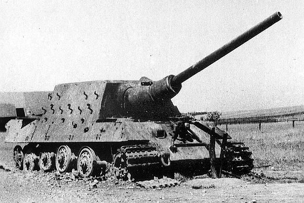 Исправный "Ягдтигр" (шасси №305020), захваченный американскими войсками, подготовлен к отправке в США. 1945 год. Эта машина ныне находится в экспозиции военного музея на Абердинском полигоне в США
