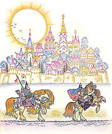 В другом царстве народ встречал русских послов хлебом-солью. Значит, и тут мир. Полетел Волх-сокол в третье царство.