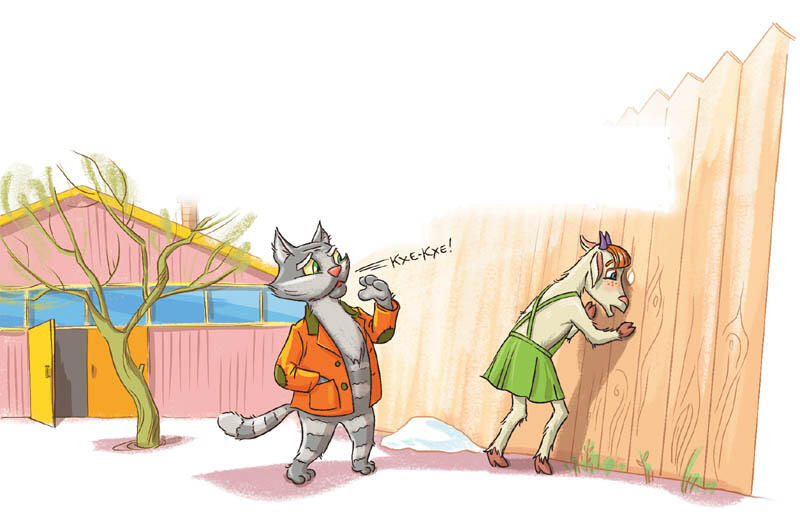 Наконец он увидел маленькую грязновато-белую лохматую спинку. Спинка крутилась возле дырки в заборе. Васька остановился, отдышался, разгладил шерсть, поправил усы и кашлянул с максимально доступной коту солидностью: