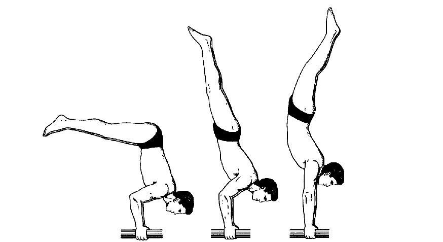 Другой пример возможного заблуждения насчёт работы собственного мышечного аппарата уже из более узкой сферы филигранного владения своим телом из спортивной гимнастики. Выход с согнутых рук силой в стойку на руках.