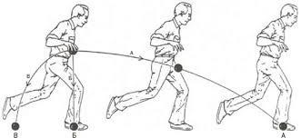 На сугубо обывательском уровне (на "личном опыте"), представляется, будто человек сгибает ноги, тем и перемещает себя вперёд. Но фактически же человек не совершает никаких сгибательных движений в коленном суставе. При беге сгибание ноги происходит сугубо под действием реактивных и инерционных сил, в которых мышцы, отвечающие за собственно сгибание ноги не участвуют. Даже наоборот, человек прилагает усилия, чтобы безопорную ногу излишне не закидывало назад и чтобы пятка не ударялась о ягодицы. Поэтому при беге наиболее активны как раз разгибатели ноги (почему при регулярных занятиях бегом и развиваются преимущественно квадрицепсы, за это отвечающие) и распрямители бедра (ягодицы), тогда как сгибатели голени (бицепс бедра) совсем не работают, несмотря на то, что голень при беге и сгибается. Иными словами, в процессе бега тело, по сути, постоянно падает вперёд, и задача человека состоит лишь в том, чтобы успевать распрямлять ногу и выставлять её вперёд, предотвращая собственное падение, и затем уже продвигать всю ногу назад за счёт распрямления бедра, но не сгибания голени. То есть голень сгибается сама в результате действия реактивных сил всей системы, полученных от ускорения. Хотя на сугубо обывательском уровне (на уровне того самого "я так чувствую", того самого "личного опыта") и кажется, будто бегун именно активно сгибает ноги. На самом деле он их разгибает, а не сгибает (Бернштейн, 1947).