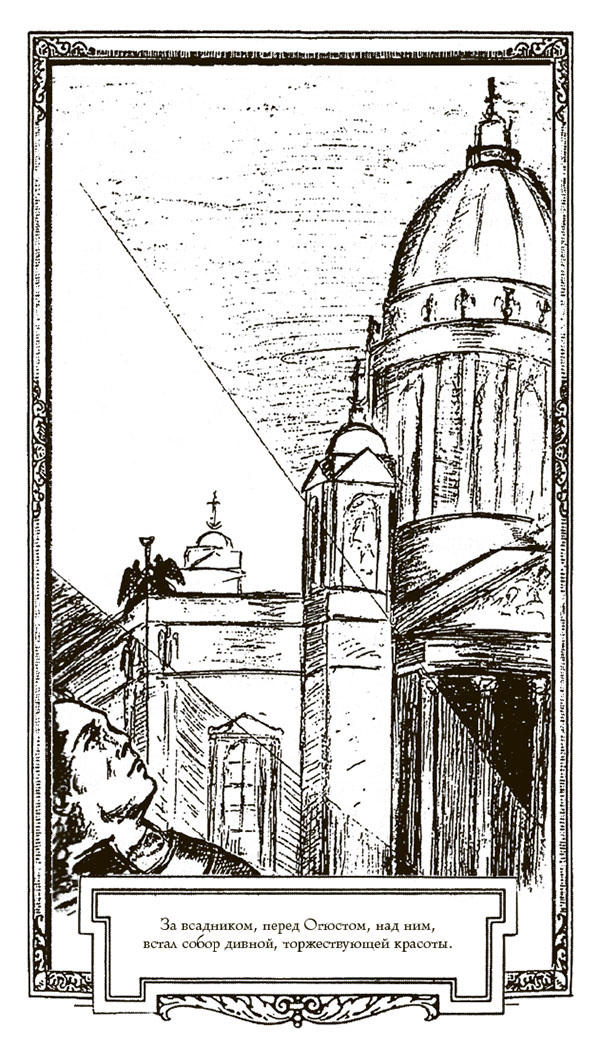 За всадником, перед Огюстом, над ним, встал собор дивной, торжествующей красоты. Пятиглавый, осененный полыхающим золотом куполов, он был одновременно громаден и легок, словно не стоял, а парил над землею. Геометрическая точность и строгость его линий сочетались со странной неправильностью пропорций, но в этой неправильности было дерзновенное совершенство, какое выступает в чистом блеске кристалла, отшлифованного самою природой, находящей и в асимметрии гениально простую красоту.