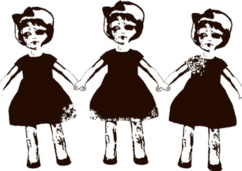 Учительница дала им лоскутки и обрывки лент из комнаты для шитья и разрешила вынести их в сад. Они должны были упражняться в вышивании, создавая платья и чепчики для нагих фарфоровых куколок.