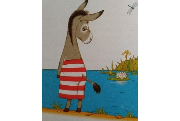 Солнышко припекало, было очень жарко. Маленький ослик стоял недалеко от своего любимого озера, ему очень хотелось искупаться, но сегодня он не решался это сделать. Почему?! Да потому что там уже плескались другие ослики. А ему было стыдно. «Чего же он стеснялся? -скажете вы. Может что-то было не так с его внешностью? Возможно его уши были слишком большие, или хвост слишком длинный?» Что вы, ребята, для ослика иметь большие уши и длинный хвост это гордость. Нет, дело было не в его внешности. Ослик был совершенно обычным осликом, таким же, как и другие. Но смотрите, он стоит такой грустный и печальный. Ему хочется подойти к другим осликам и так смело сказать: «Hallo!» Вернее: «И-а!» Но он молча прячется за камышами. Всем так весело там на озере, только не ему: Солнышко греет и припекает его, пот течёт ручьём, но он никак не решается зайти в прохладную водичку, потому что его там все заметят.