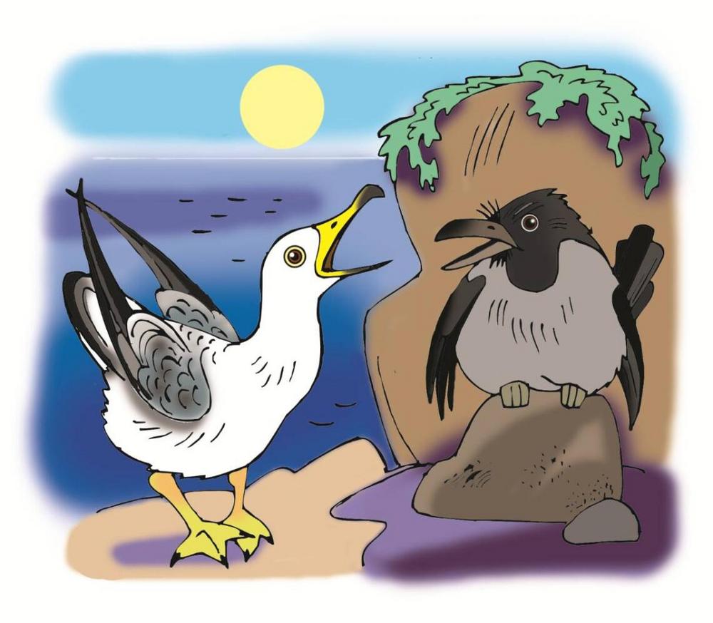Ты почему всё время находишься на жарком солнце и остаёшься такой же бело-снежной? спросила Ворона у Чайки.