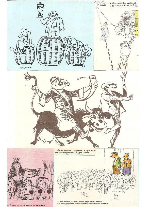 1. Победитель. 2. Янко совсем спился идёт прямиком на работу!. 3. Одна голова хорошо, а три лучше соображают в два счёта.. 4. Точность вежливость королей. 5. А я и не знал. какой богатой жизнью вы живете!