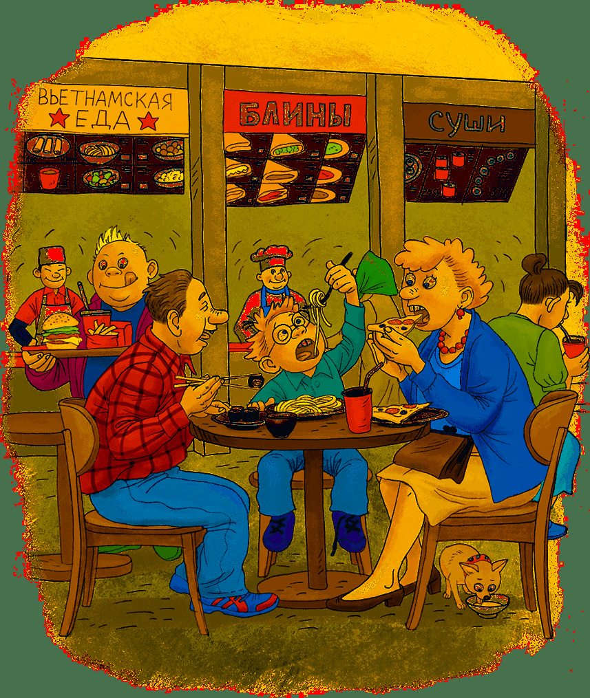«Если видишь счастливых людей, спроси, кто их повар!» говорят в Либе́рии. Смысл этой пословицы сразу становится ясен всем: когда вкусно пообедаешь, то и на душе становится веселее. Но ведь Либерия находится в Африке, на берегу Атлантического океана. Там нет зимы и всё лето идут тропи́ческие дожди. Там и готовят наверняка совсем иначе: нет ни любимых блинчиков со сметаной, ни компотов из вишни. Что же едят в других странах, где не растут привычные нам растения? И так ли сильно отличаются традиции принятия пищи в России, Вьетнаме, Франции или джунглях Амазонки?