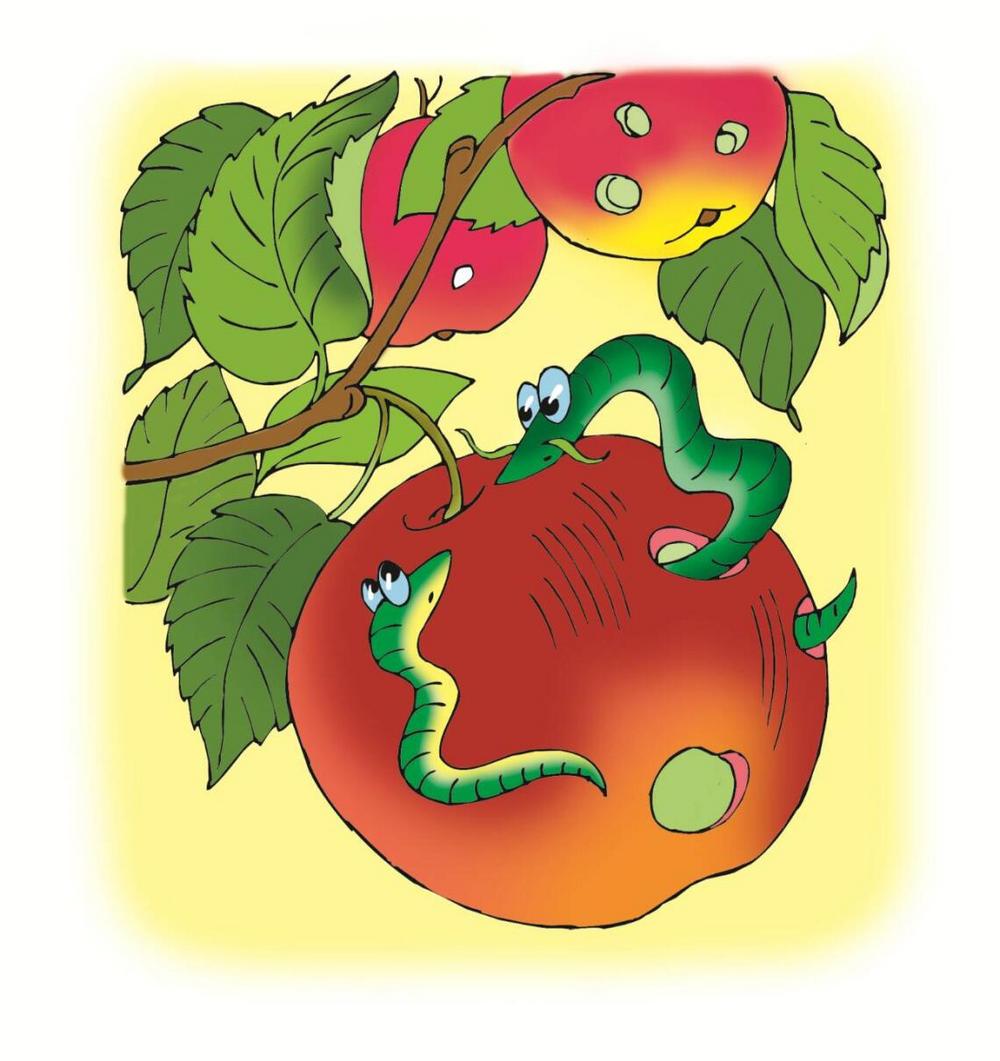 Какой ты, дедушка, жадный. Зачем на дереве все яблоки проточил? обиделся моло-дой Червячок на старого.