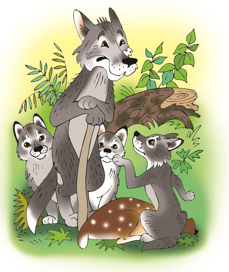Послал старый Волк своих молодых отпрысков на охоту и стал дожидаться их возвращения. Воз-вращается первый с куском мяса.