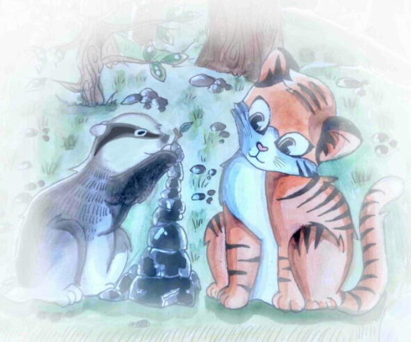 Лучшим другом Грозного Рыка был барсучок Полосатый Бочок. Вместе они и бегали, и прыгали.